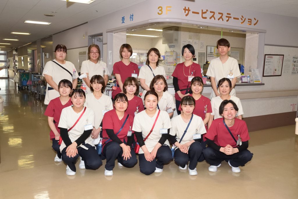 忙しい病棟ですが、入院してきて良かったと思ってもらえるよう笑顔を忘れずにスタッフ全員で頑張っています。